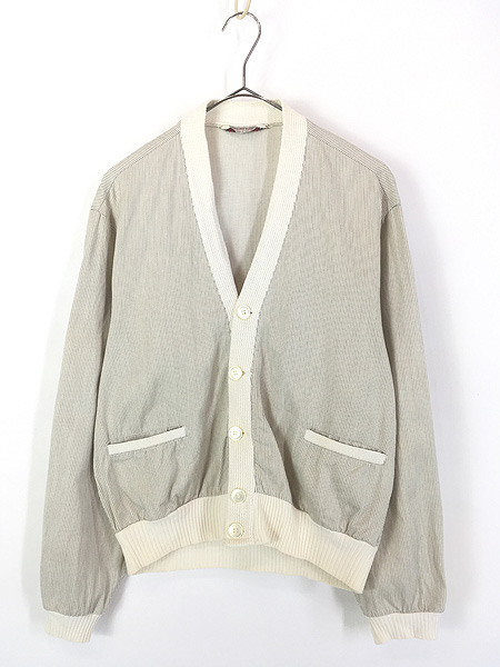 古着 50s USA製 McGREGOR ドット ストライプ コットンサテン カーディガン ジャケット M