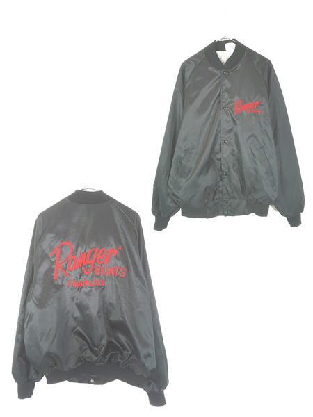 古着 80s USA製 Westark 「Ranger BOATS」 光沢 サテン スタジアム ジャケット スタジャン XL