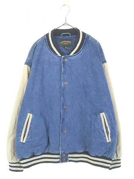 古着 90s Cambridge リブライン パデッド ブルー デニム スタジアム ジャケット スタジャン XL