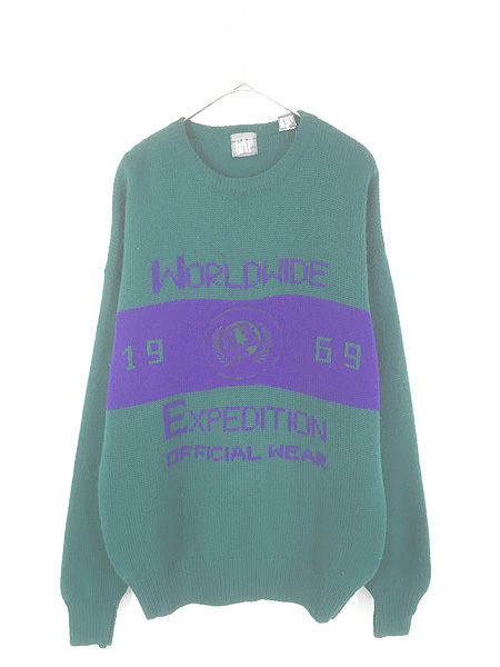古着 90s GAP 「Worldwide Expedition」 2tone ヘビー ローゲージ ウール ニット セーター M