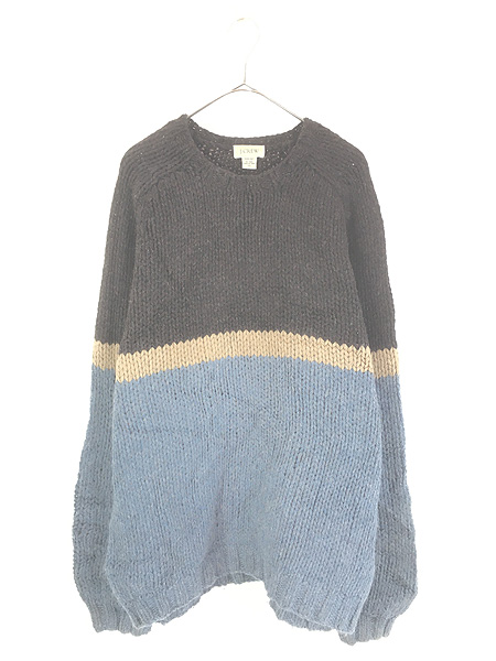 古着 00s J Crew 3カラー ヘビー ローゲージ ウール ハンド ニット セーター XL