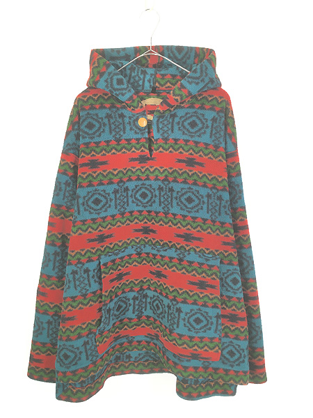 古着 90s USA製 WoolRich ネイティブ ボーダー フーデッド フリース パーカー ジャケット ドラポケ L
