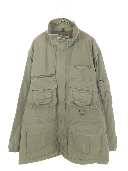 古着 90s WoolRich 比翼 コットン キャンバス ハンティング ギミック ジャケット & ベスト 2way XL