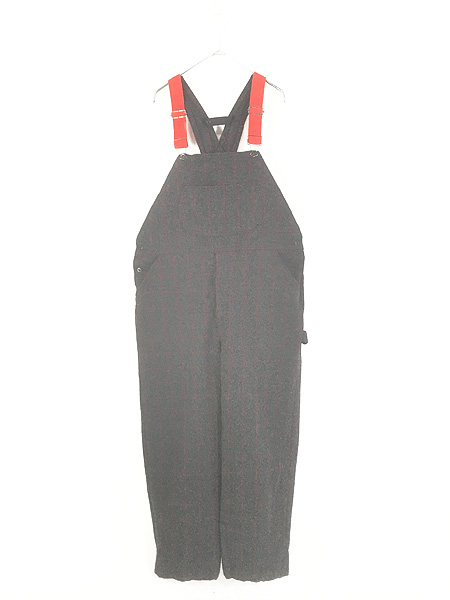 古着 80s USA製 WoolRich ウィンドウ ペン チェック 防寒 メルトン ウール オーバーオール L