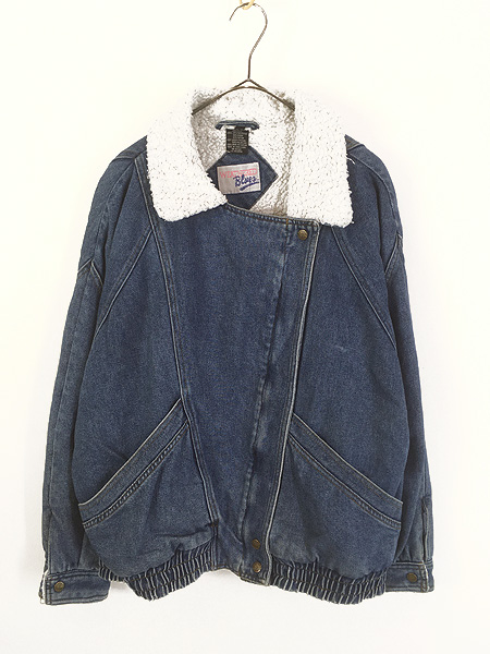 レディース 古着 90s WEATHERED Blues 裏ボア ブルー デニム ライダース ジャケット Gジャン L