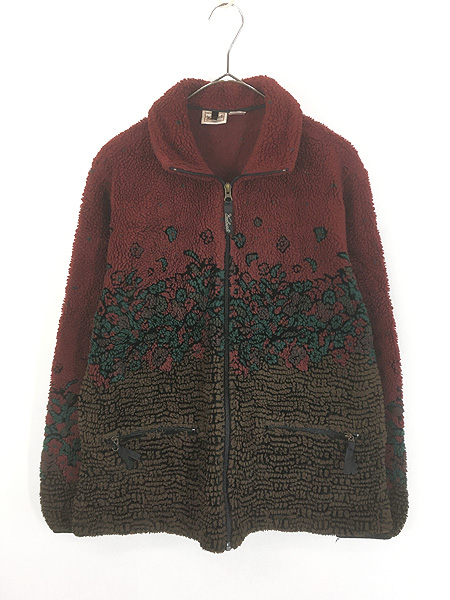 レディース 古着 90s USA製 WoolRich 花 フラワー デザイン 総柄 フリース ジャケット M