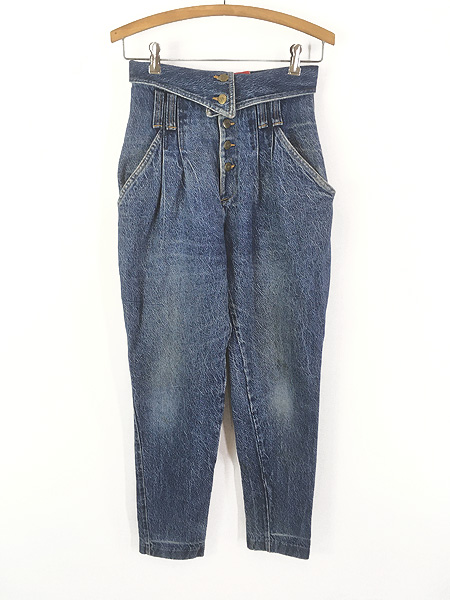 レディース 古着 80s USA製 bon iour 2タック ケミカル デニム パンツ ジーンズ テーパード W26 L28.5