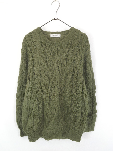 レディース 古着 80s 日本製 Itokin ケーブル編み モヘアルック シャギー ウール ニット セーター L位