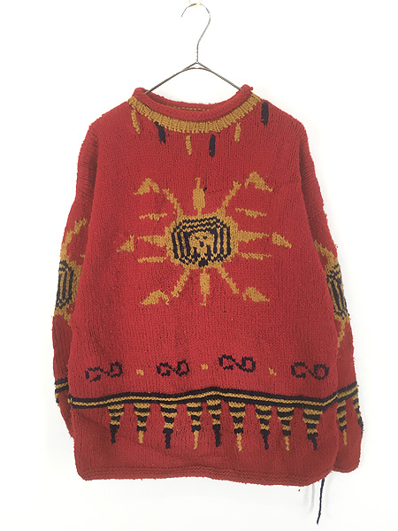 レディース 古着 90s エクアドル製 太陽 ネイティブ ヘビー ウール ハンド ニット セーター L位