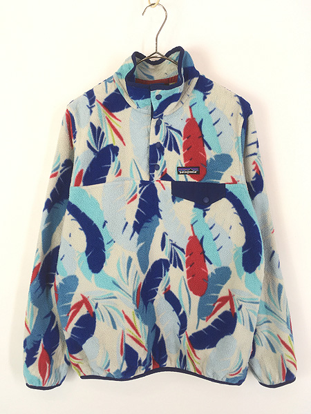 レディース 古着 16s Patagonia 羽 フェザー 総柄 シンチラ スナップT フリース ジャケット M