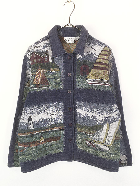 レディース 古着 90s KEREN hart ヨット 灯台 海 総柄 ゴブラン ジャケット L