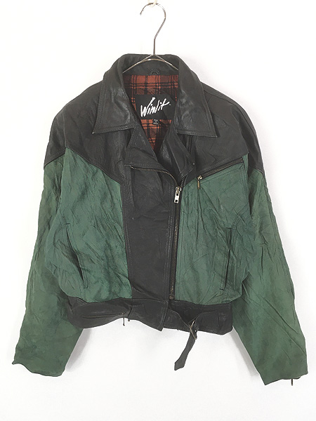 レディース 古着 80s Winlit 裏地 チェック 異素材 本革 スエード レザー ダブル ライダース ジャケット S