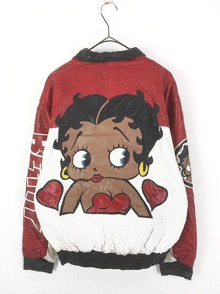レディース 古着 80s BETTY BOOP ベティ ブープ バイカラー パデッド 本革 レザー ジャケット L位