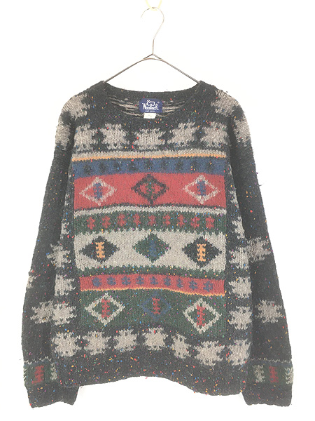 古着 80s WoolRich カラフル ネップ ネイティブ 総柄 ウール ニット セーター XL