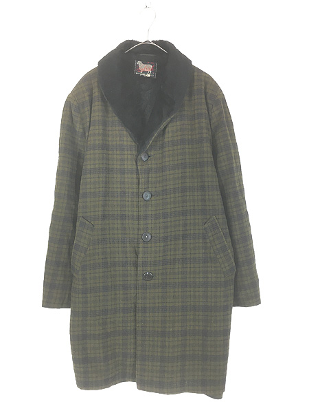 古着 60s WoolRich ボア ライナー ショールカラー チェック ウール ギャング コート 44