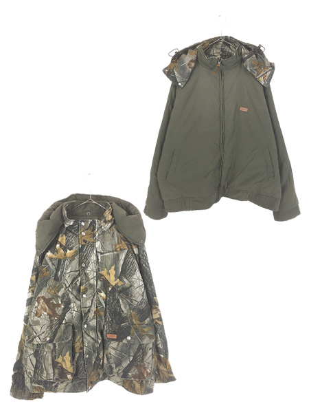 古着 90-00s WoolRich リアルツリー カモ 迷彩 × 無地 プレーン リバーシブル 4way パデット ジャケット XL
