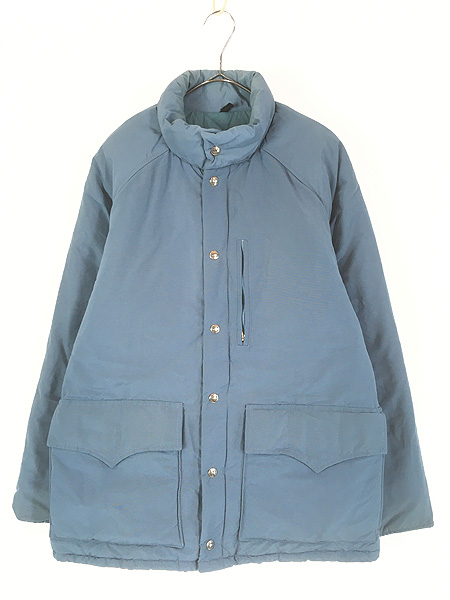 古着 70s WoolRich 60/40 クロス スタンドカラー 防寒 パデット アウトドア マウンテン ジャケット ライトブルー L