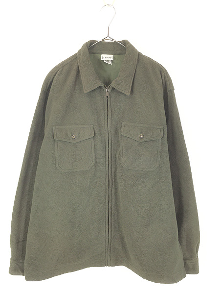 古着 00s LL Bean 無地 ソリッド フリース ジップアップ シャツ ジャケット オリーブ L