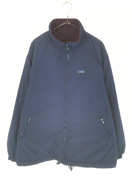 古着 90s LL Bean リブなし 「Warm-up Jacket」 フリース ライナー シェルド ウォームアップ ジャケット ネイビー XL位