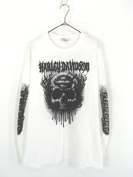 古着 10s HARLEY DAVIDSON シールド ファイヤー スカル 長袖 Tシャツ ロンT L