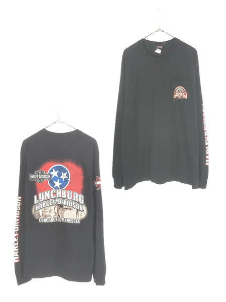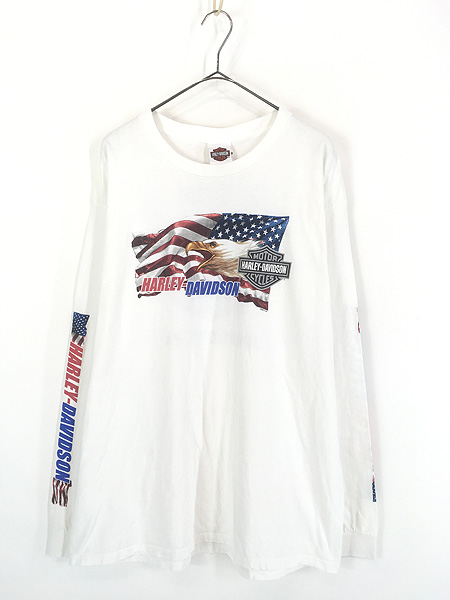 古着 00s USA製 HARLEY DAVIDSON イーグル 星条旗 長袖 Tシャツ ロンT XL