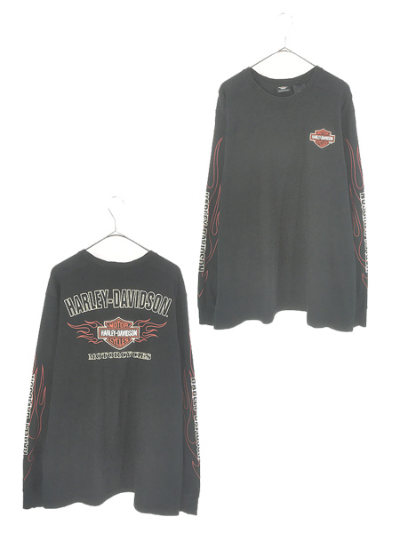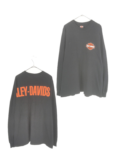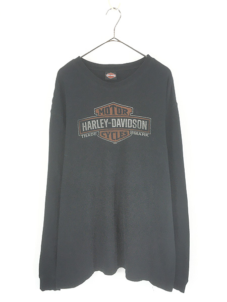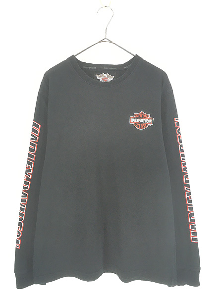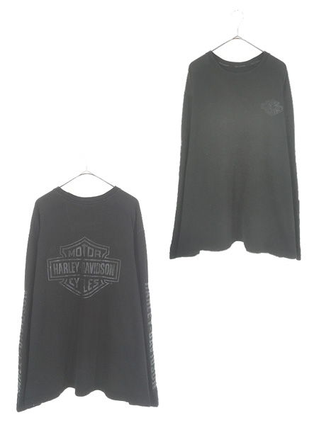 古着 HARLEY DAVIDSON バー&シールド オールブラック プリント 長袖 Tシャツ ロンT XL