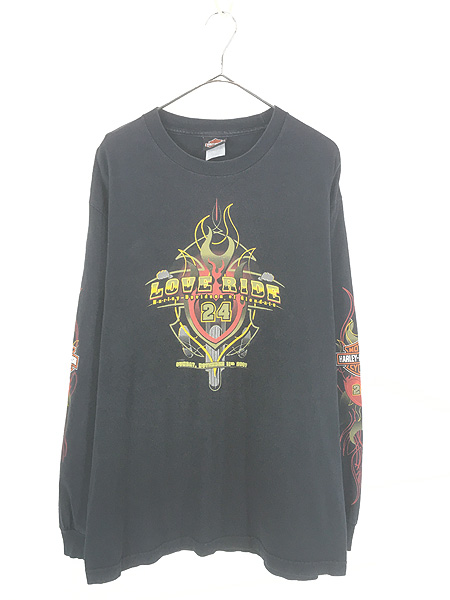 古着 00s HARLEY DAVIDSON 「LOVE RIDE 24」 アーム プリント 長袖 Tシャツ ロンT L位