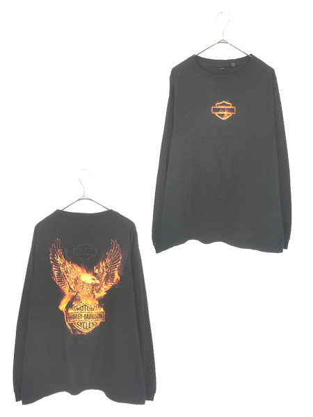 古着 HARLEY DAVIDSON ファイヤー バー&シールド イーグル プリント 長袖 Tシャツ ロンT L
