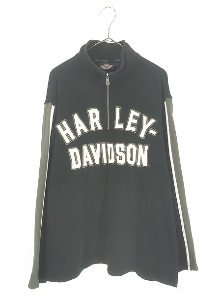 古着 HARLEY DAVIDSON ロゴ パッチ 刺しゅう ハーフジップ 長袖 Tシャツ ロンT L