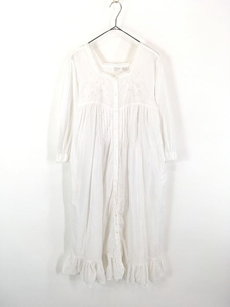 レディース 古着 90s 花 フラワー ビーズ ステッチ パフスリーブ タック コットン ワンピース ロング丈 M