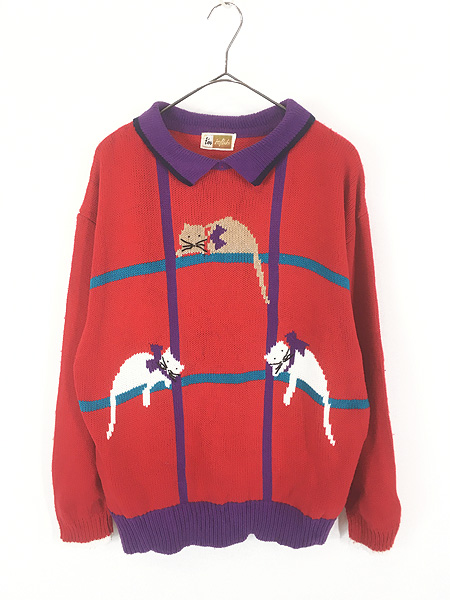 レディース 古着 90s I'm inflaks 猫 ねこちゃん アニマル 襟付き ニット セーター M