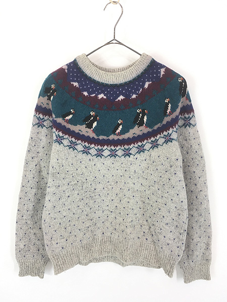 レディース 古着 80s WoolRich ペンギン ノルディック 総柄 ウール ニット セーター S