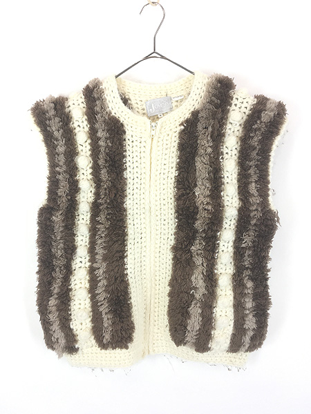 レディース 古着 90s Joyce ストライプ ポンポン フルジップ ニット ベスト M