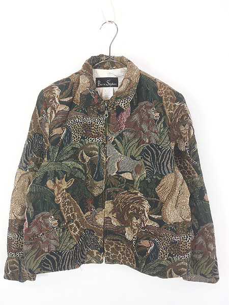レディース 古着 USA製 Barrie Stephens ライオン きりん サイ アニマル フルジップ ゴブラン ジャケット L