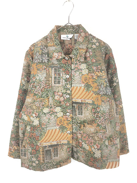 レディース 古着 ERINLONDON 花屋 ガーデン 風景 総柄 デザイン ゴブラン ジャケット L