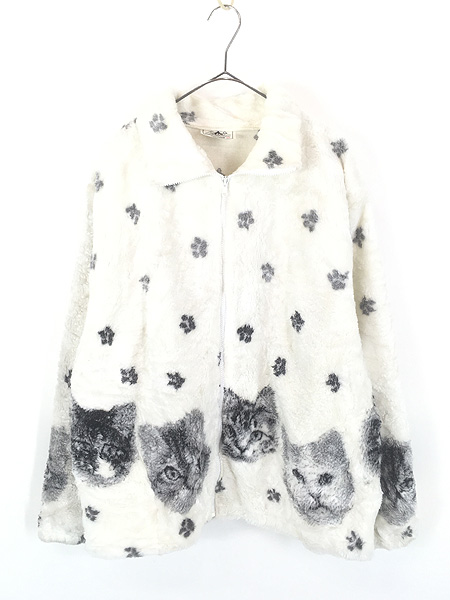 レディース 古着 90s USA製 BLACK MOUNTAIN 猫 足跡 フリース ジャケット 2XL