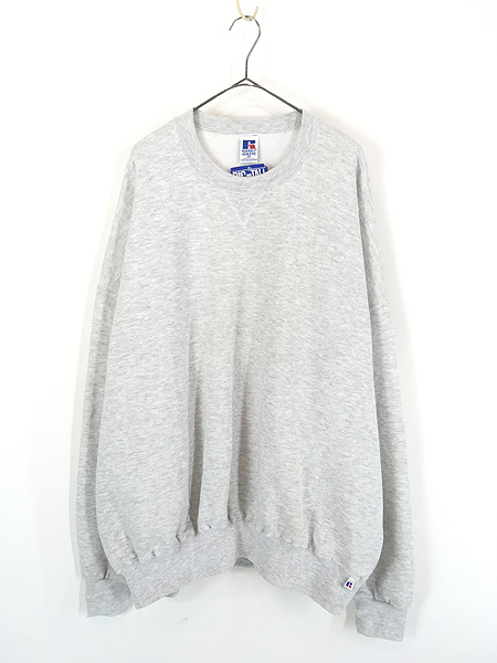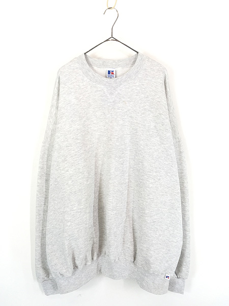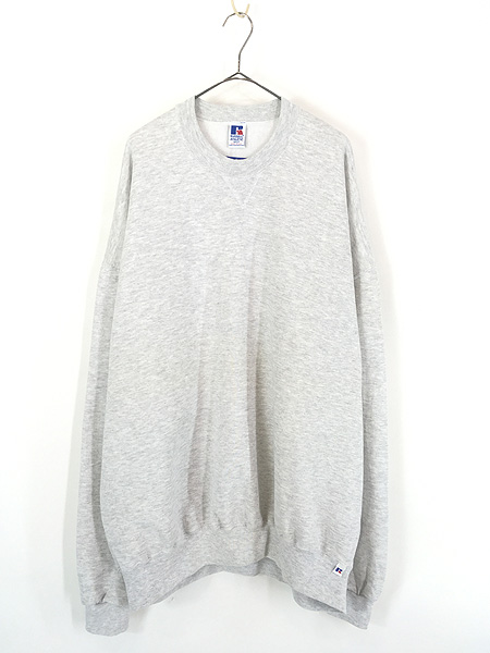 古着 Deadstock!! 90s USA製 Russell 「Big & Tall」 無地 プレーン 前V セットイン スウェット トレーナー グレー 4X