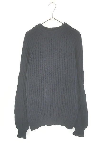 古着 80s England製 LANDS' END 畦編み ローゲージ ヘビー ウール ハンド ニット セーター 紺 M
