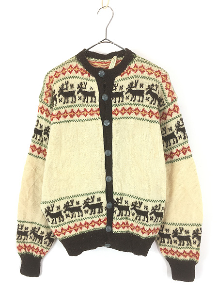 古着 60s Norway製 コンチョボタン ノルディック × チロリアン トナカイ ウール ハンド ニット カーディガン M位