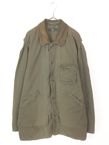 古着 90s BANANA REPUBLIC 本革 レザー襟 コットンツイル ハンティング カバーオール ジャケット L