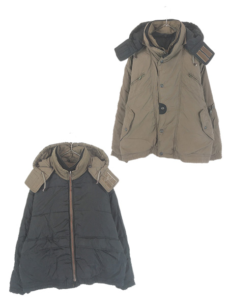 古着 90s LANDS' END 2way ボリューム グース ダウン フーディー コート L