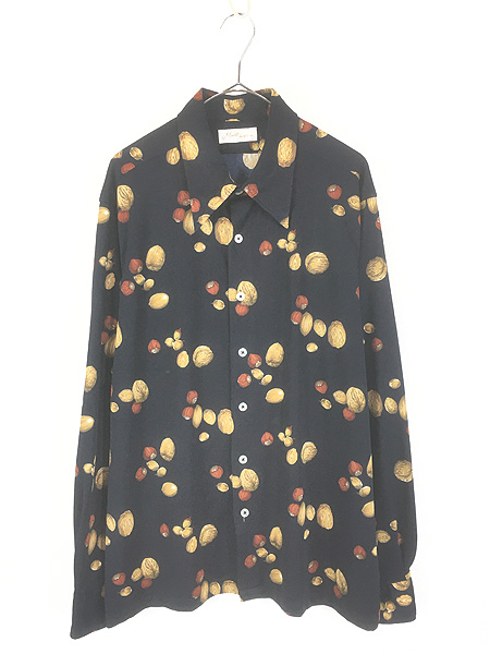 古着 70s Merrill Shape どんぐり 木の実 総柄 ボックス ポリエステル シャツ XL
