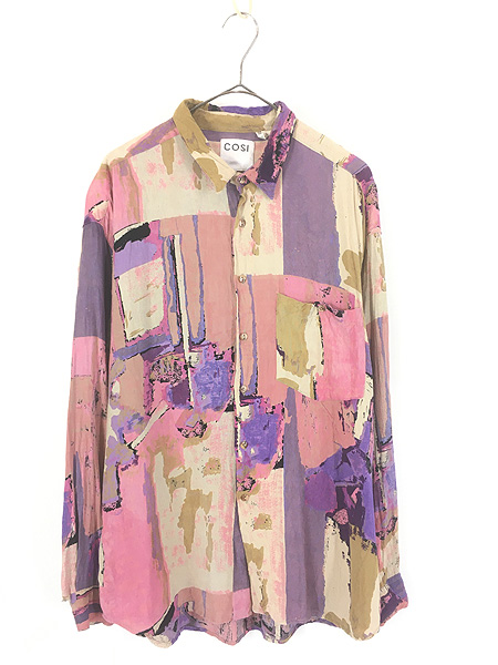 古着 90s COSI ペイント グラフィック アート 総柄 100% レーヨン シャツ XL