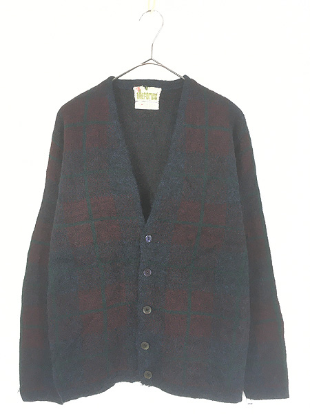 古着 60s Forum Sportswear チェック シャギー アクリル モヘア ウール ニット カーディガン L