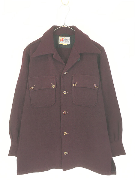 古着 40-50s Julmor Jac shirt ロングポイント襟 開襟 メルトン ウール ジャック シャツ ジャケット S