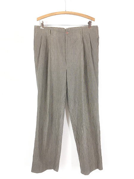 古着 90s Generra 腰帯なし ハイウエスト ストライプ ラミー コットン タック ワイド パンツ 34