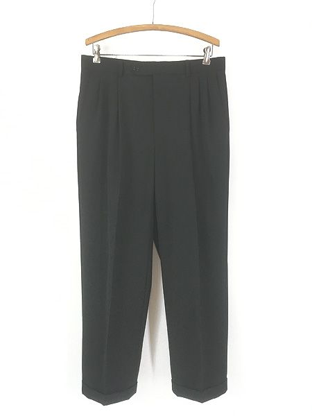 古着 90s USA製 Monsieur by GIVENCHY 3タック ウール ギャバジン スラックス ワイド パンツ ブラック 34R