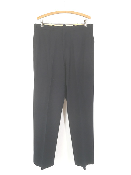 古着 50s ブラック ギャバジン ウール スラックス パンツ ストレート W34 L30