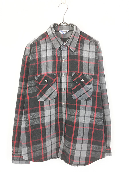 古着 80s USA製 FIVE BROTHER 好配色 レッド × ブラック × グレー チェック ヘビー フランネル シャツ ヘビネル XL