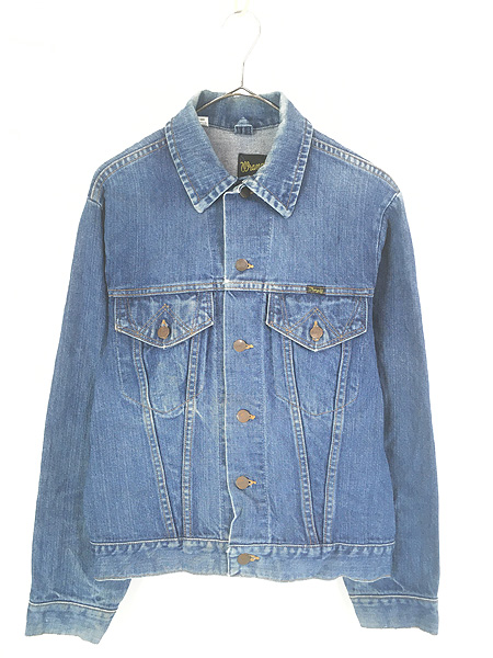 古着 70s USA製 Wrangler サイレントW フラップ 2ポケ 濃紺 ブルー デニム トラッカー ジャケット Gジャン 38